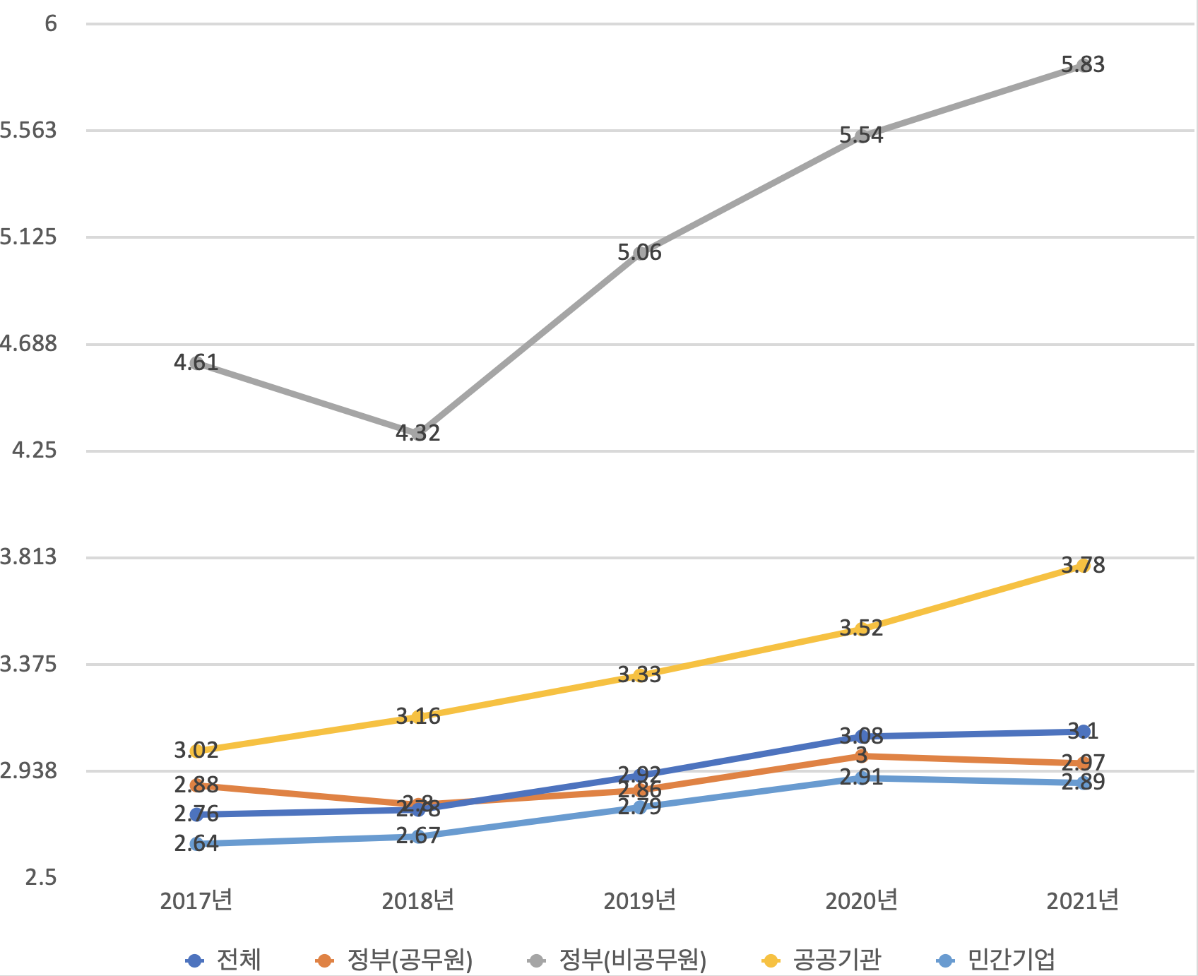 [연도별·부문별 장애인 의무고용현황(고용률)]